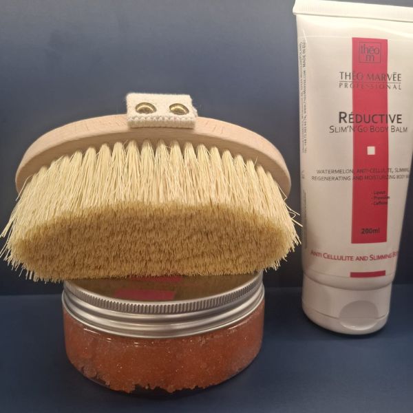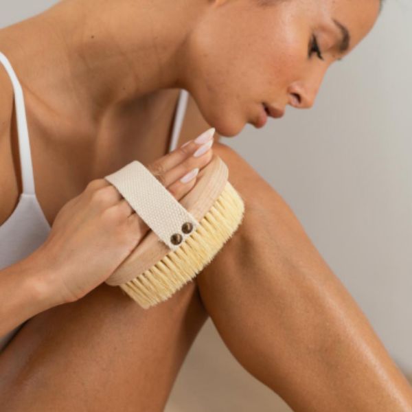 Szczotkowanie na sucho – codziennie przed prysznicem (5–10 min), zawsze w kierunku serca. Efekt: Poprawia mikrokrążenie i pomaga usuwać nadmiar wody z tkanek.